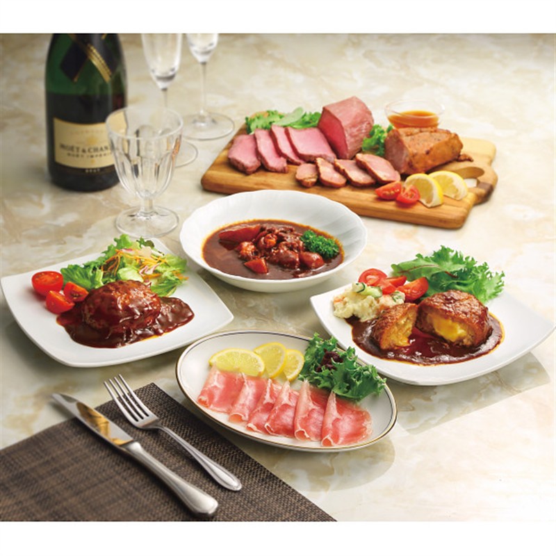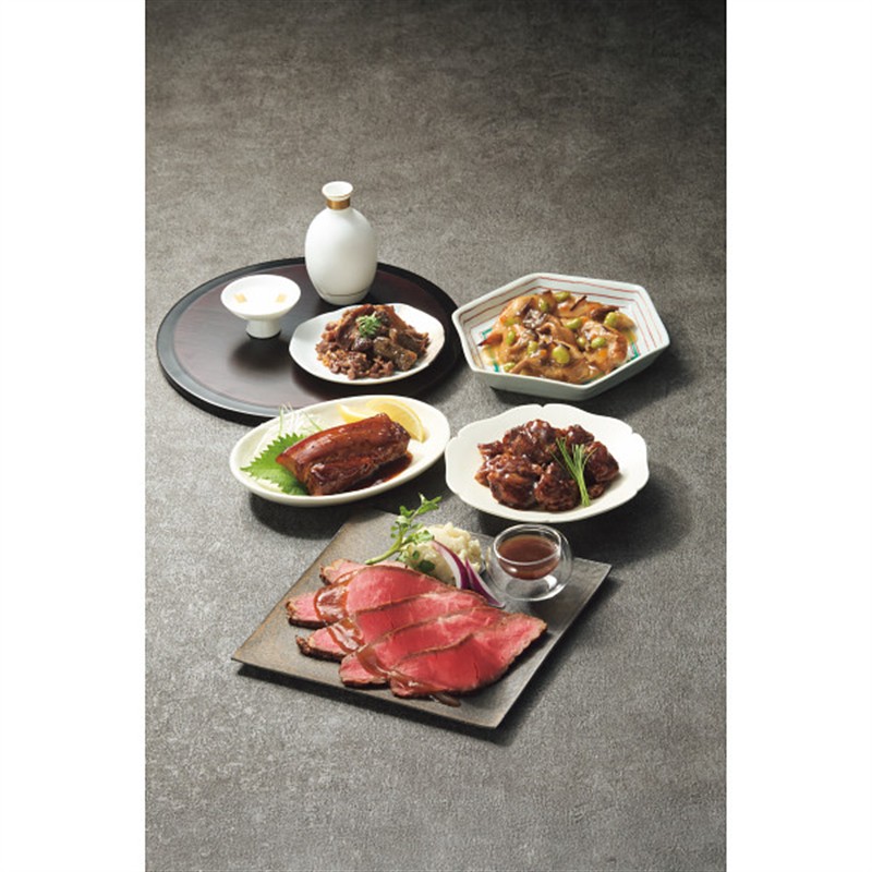 ●賛否両論(香味叉焼・つくねの蕪みぞれ仕立て各180g、豚角煮(香味醤油仕立て130g×2、だし仕立て130g)、牛しぐれ煮ごぼう55g)
