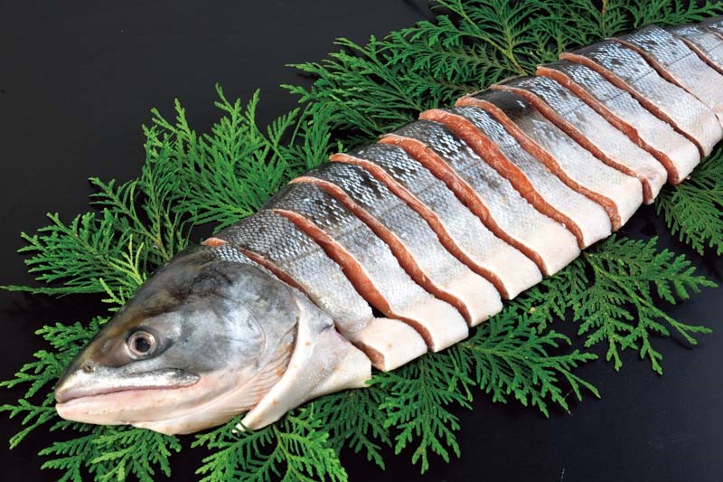 北海道根室沖でとれた鮭を半身切り身にしました。