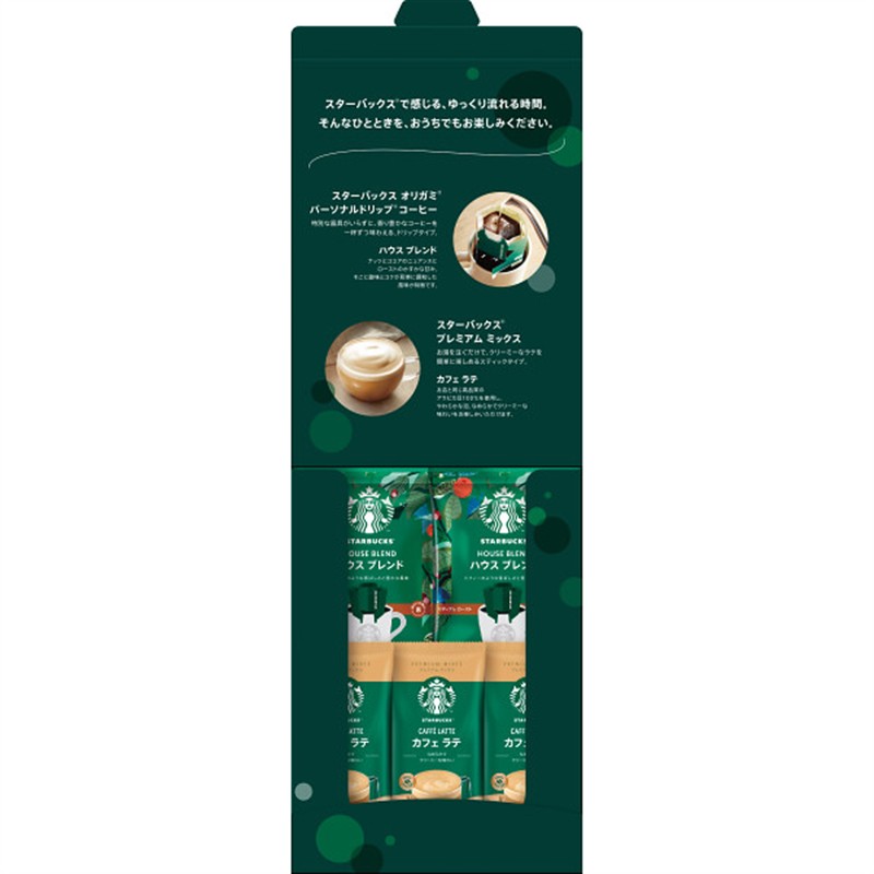 ●スターバックスオリガミパーソナルドリップコーヒーハウスブレンド(9g×2)、スターバックスプレミアムミックスカフェラテ(18g×3)(スティック)